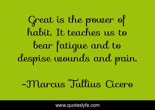 This page presents the quote "Great is the power of habit. It teaches us to bear fatigue and to despise wounds and pain.". Author of this quote is Marcus Tullius Cicero. This quote is about great, pain, habit,.