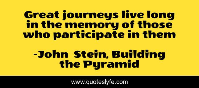 "John Stein, Building the Pyramid Quotes." Quoteslyfe.com, 2025. Fri. 05 Dec. 2025. <https://www.quoteslyfe.com/quote/Great-journeys-live-long-in-the-memory-174555>.