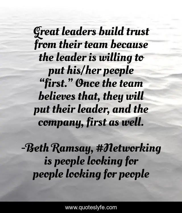"Beth Ramsay, #Networking is people looking for people looking for people Quotes." Quoteslyfe.com, 2025. Fri. 05 Dec. 2025. <https://www.quoteslyfe.com/quote/Great-leaders-build-trust-from-their-team-119812>.