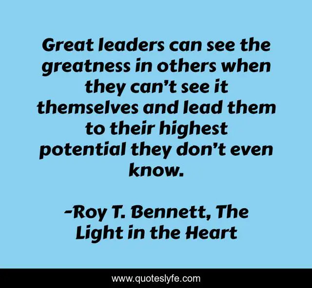 "Roy T. Bennett, The Light in the Heart Quotes." Quoteslyfe.com, 2025. Mon. 08 Dec. 2025. <https://www.quoteslyfe.com/quote/Great-leaders-can-see-the-greatness-in-2398>.