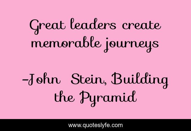 "John Stein, Building the Pyramid Quotes." Quoteslyfe.com, 2025. Fri. 05 Dec. 2025. <https://www.quoteslyfe.com/quote/Great-leaders-create-memorable-journeys-174554>.