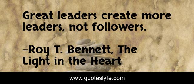 "Roy T. Bennett, The Light in the Heart Quotes." Quoteslyfe.com, 2025. Mon. 08 Dec. 2025. <https://www.quoteslyfe.com/quote/Great-leaders-create-more-leaders-not-followers-2173>.