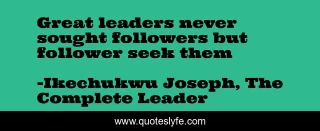 "Ikechukwu Joseph, The Complete Leader Quotes." Quoteslyfe.com, 2025. Sat. 06 Dec. 2025. <https://www.quoteslyfe.com/quote/Great-leaders-never-sought-followers-but-follower-64116>.