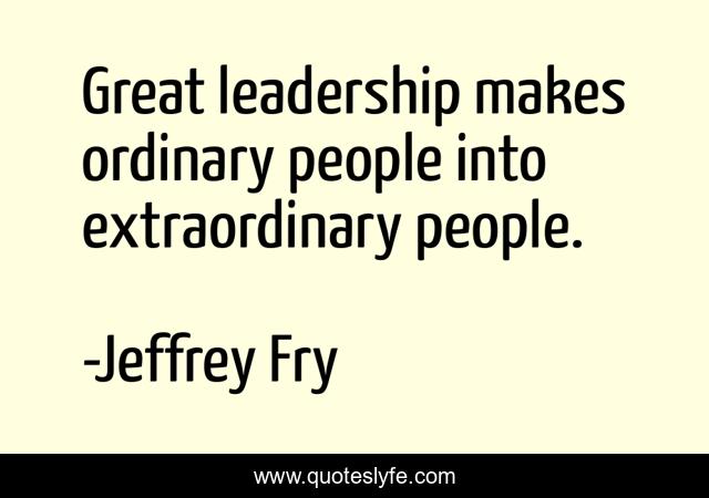 This page presents the quote "Great leadership makes ordinary people into extraordinary people.". Author of this quote is Jeffrey Fry. This quote is about great, people, extraordinary, leadership, ordinary, makes,.