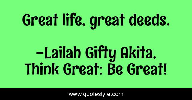 "Lailah Gifty Akita, Think Great: Be Great! Quotes." Quoteslyfe.com, 2025. Sat. 06 Dec. 2025. <https://www.quoteslyfe.com/quote/Great-life-great-deeds-95021>.