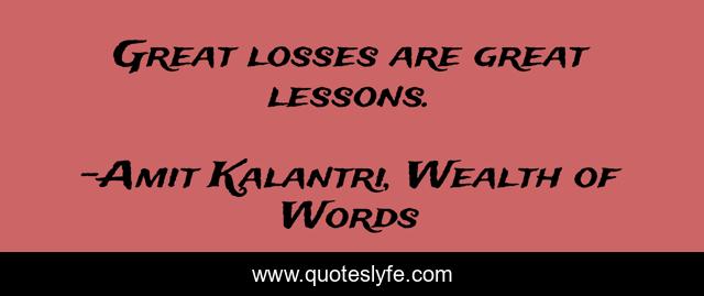 "Amit Kalantri, Wealth of Words Quotes." Quoteslyfe.com, 2025. Mon. 08 Dec. 2025. <https://www.quoteslyfe.com/quote/Great-losses-are-great-lessons-8183>.