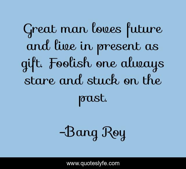 This page presents the quote "Great man loves future and live in present as gift. Foolish one always stare and stuck on the past.". Author of this quote is Bang Roy. .