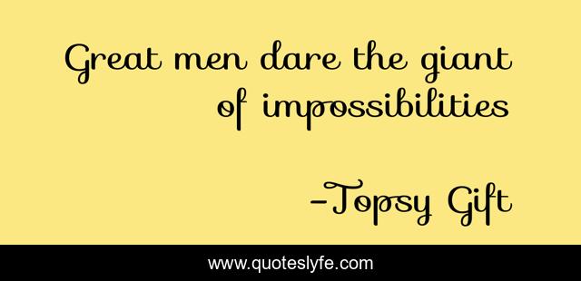 "Topsy Gift Quotes." Quoteslyfe.com, 2025. Fri. 05 Dec. 2025. <https://www.quoteslyfe.com/quote/Great-men-dare-the-giant-of-impossibilities-127528>.