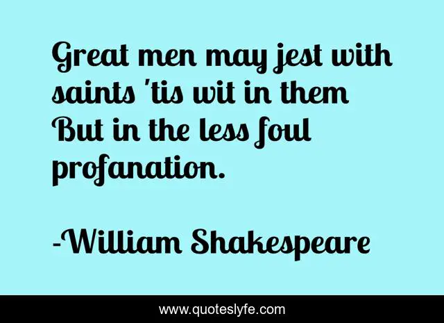 "William Shakespeare Quotes." Quoteslyfe.com, 2025. Sat. 06 Dec. 2025. <https://www.quoteslyfe.com/quote/Great-men-may-jest-with-saints-tis-278787>.