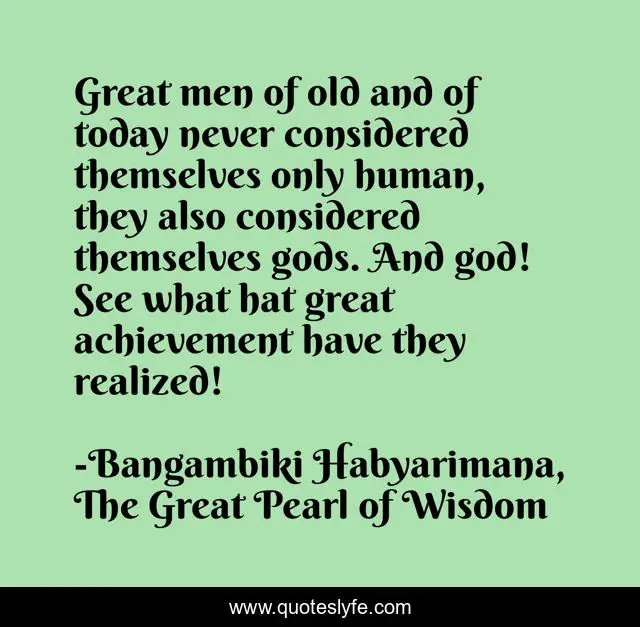 "Bangambiki Habyarimana, The Great Pearl of Wisdom Quotes." Quoteslyfe.com, 2025. Sun. 07 Dec. 2025. <https://www.quoteslyfe.com/quote/Great-men-of-old-and-of-today-165728>.
