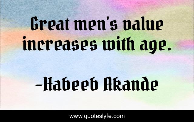 This page presents the quote "Great men's value increases with age.". Author of this quote is Habeeb Akande. This quote is about great-men, value,.