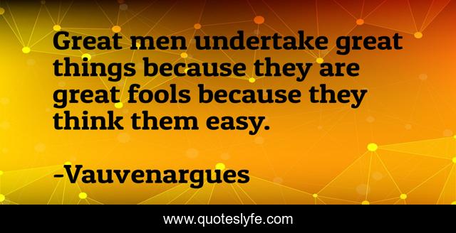 This page presents the quote "Great men undertake great things because they are great fools because they think them easy.". Author of this quote is Vauvenargues. .