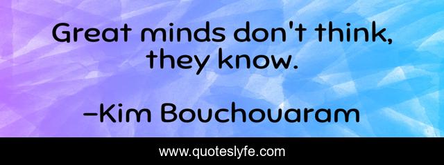 This page presents the quote "Great minds don't think, they know.". Author of this quote is Kim Bouchouaram. This quote is about life, mindset,.