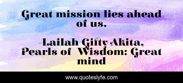 "Lailah Gifty Akita, Pearls of Wisdom: Great mind Quotes." Quoteslyfe.com, 2025. Mon. 08 Dec. 2025. <https://www.quoteslyfe.com/quote/Great-mission-lies-ahead-of-us-107221>.