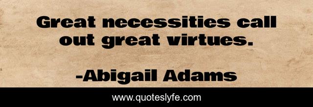 This page presents the quote "Great necessities call out great virtues.". Author of this quote is Abigail Adams. This quote is about necessities, call, virtues,.