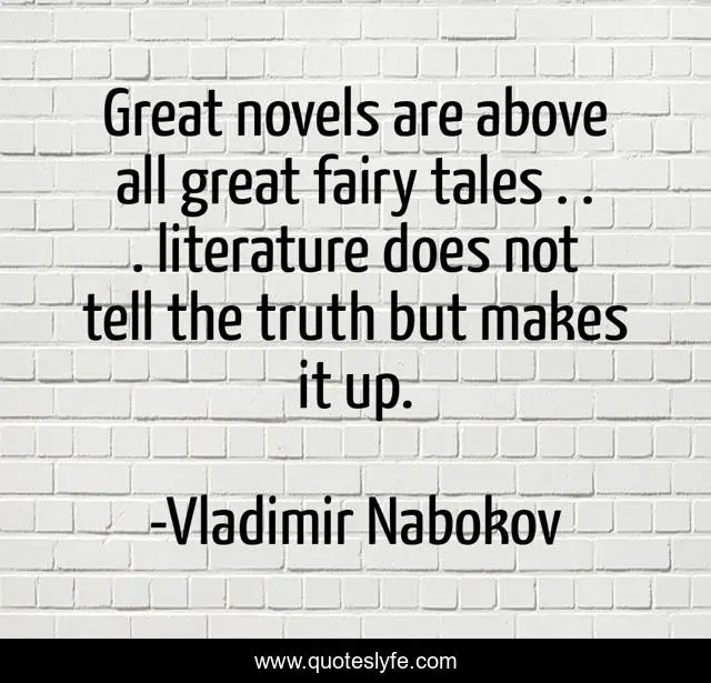 This page presents the quote "Great novels are above all great fairy tales . . . literature does not tell the truth but makes it up.". Author of this quote is Vladimir Nabokov. .