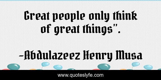 "Abdulazeez Henry Musa Quotes." Quoteslyfe.com, 2025. Mon. 08 Dec. 2025. <https://www.quoteslyfe.com/quote/Great-people-only-think-of-great-things-239969>.
