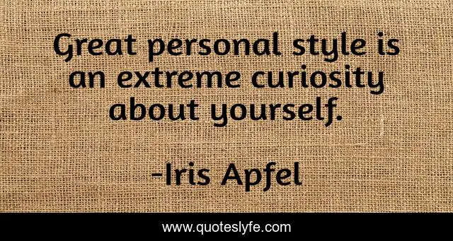 "Iris Apfel Quotes." Quoteslyfe.com, 2025. Fri. 05 Dec. 2025. <https://www.quoteslyfe.com/quote/Great-personal-style-is-an-extreme-curiosity-310997>.