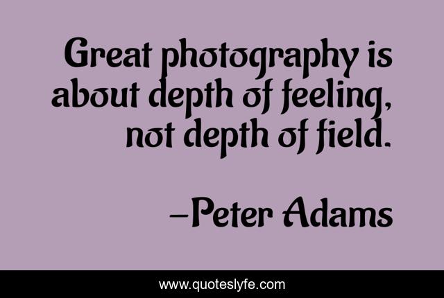 This page presents the quote "Great photography is about depth of feeling, not depth of field.". Author of this quote is Peter Adams. .