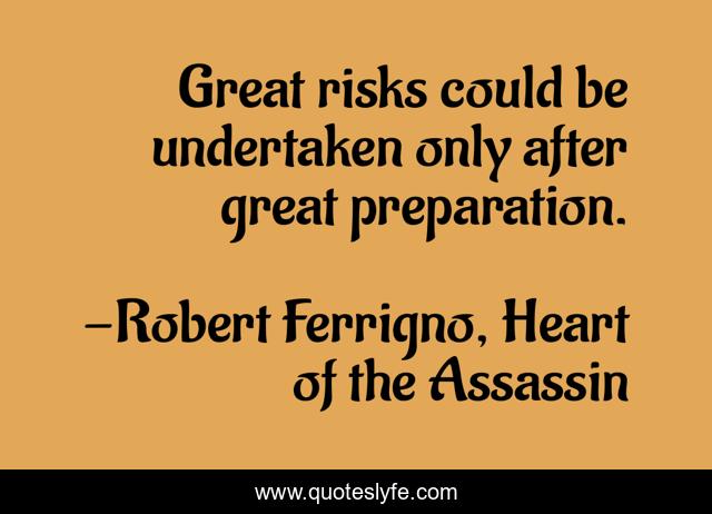 This page presents the quote "Great risks could be undertaken only after great preparation.". Author of this quote is Robert Ferrigno, Heart of the Assassin. This quote is about preparation, risk,.