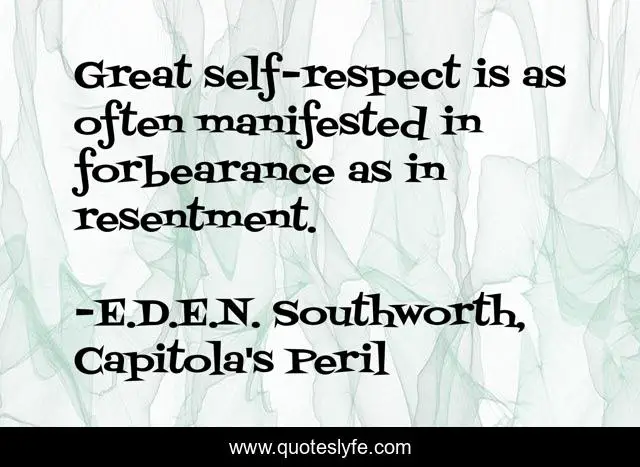 This page presents the quote "Great self-respect is as often manifested in forbearance as in resentment.". Author of this quote is E.D.E.N. Southworth, Capitola's Peril. This quote is about forebearance, self-respect,.