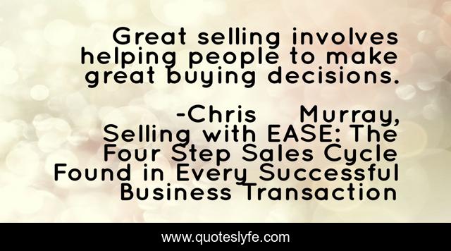 "Chris Murray, Selling with EASE: The Four Step Sales Cycle Found in Every Successful Business Transaction Quotes." Quoteslyfe.com, 2025. Mon. 08 Dec. 2025. <https://www.quoteslyfe.com/quote/Great-selling-involves-helping-people-to-make-128445>.