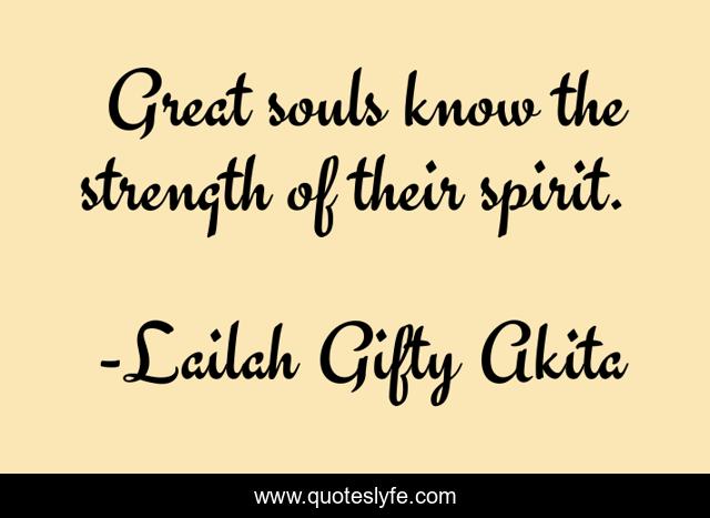 This page presents the quote "Great souls know the strength of their spirit.". Author of this quote is Lailah Gifty Akita. This quote is about strength, great-people, souls,.