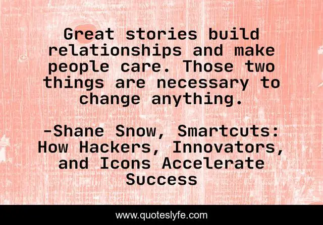 "Shane Snow, Smartcuts: How Hackers, Innovators, and Icons Accelerate Success Quotes." Quoteslyfe.com, 2025. Fri. 05 Dec. 2025. <https://www.quoteslyfe.com/quote/Great-stories-build-relationships-and-make-people-200046>.