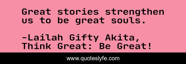 "Lailah Gifty Akita, Think Great: Be Great! Quotes." Quoteslyfe.com, 2025. Sat. 06 Dec. 2025. <https://www.quoteslyfe.com/quote/Great-stories-strengthen-us-to-be-great-91716>.