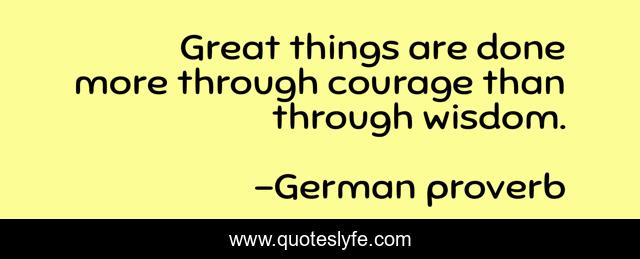 This page presents the quote "Great things are done more through courage than through wisdom.". Author of this quote is German proverb. .