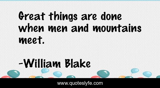 This page presents the quote "Great things are done when men and mountains meet.". Author of this quote is William Blake. This quote is about mountains, great things, men,.