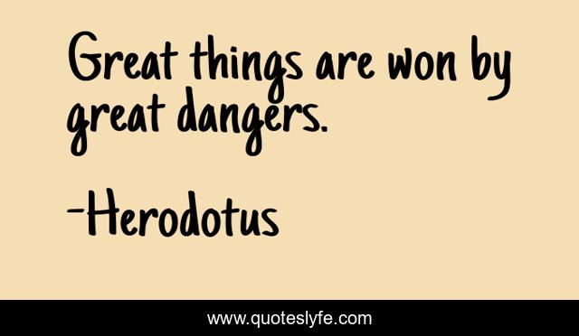 "Herodotus Quotes." Quoteslyfe.com, 2025. Mon. 08 Dec. 2025. <https://www.quoteslyfe.com/quote/Great-things-are-won-by-great-dangers-311163>.