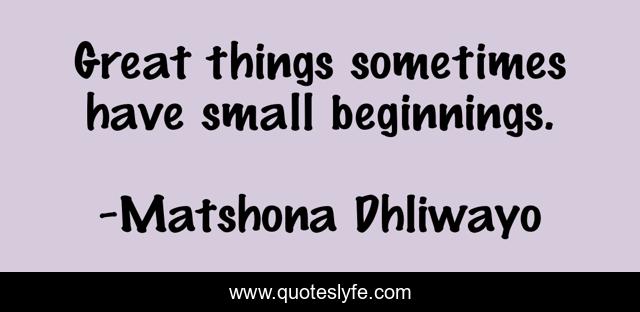 "Matshona Dhliwayo Quotes." Quoteslyfe.com, 2025. Fri. 05 Dec. 2025. <https://www.quoteslyfe.com/quote/Great-things-sometimes-have-small-beginnings-190010>.