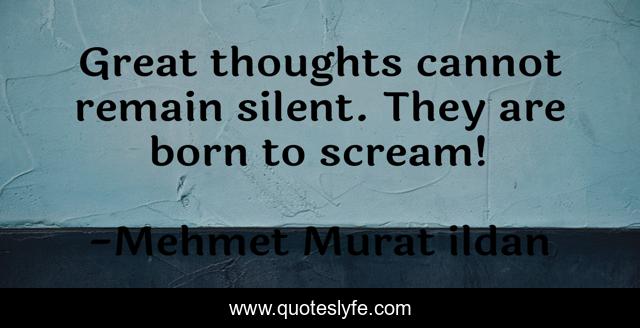 This page presents the quote "Great thoughts cannot remain silent. They are born to scream!". Author of this quote is Mehmet Murat ildan. .