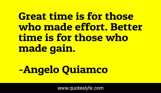 This page presents the quote "Great time is for those who made effort. Better time is for those who made gain.". Author of this quote is Angelo Quiamco. This quote is about better, great, time,.