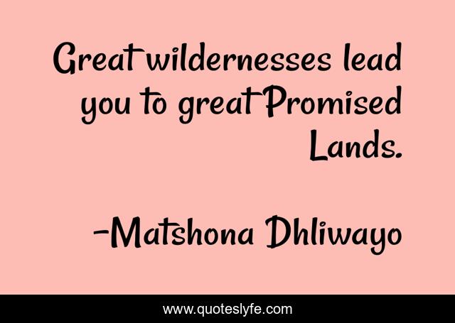 "Matshona Dhliwayo Quotes." Quoteslyfe.com, 2025. Sat. 06 Dec. 2025. <https://www.quoteslyfe.com/quote/Great-wildernesses-lead-you-to-great-Promised-190003>.