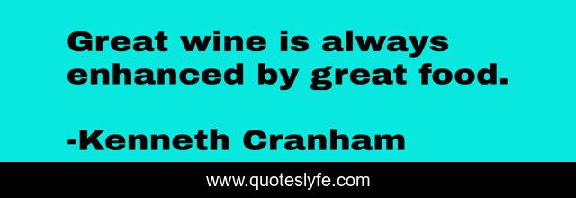 This page presents the quote "Great wine is always enhanced by great food.". Author of this quote is Kenneth Cranham. This quote is about always, great, wine,.