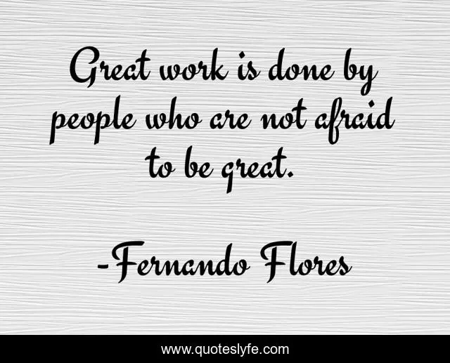 This page presents the quote "Great work is done by people who are not afraid to be great.". Author of this quote is Fernando Flores. This quote is about fear, great, people,.