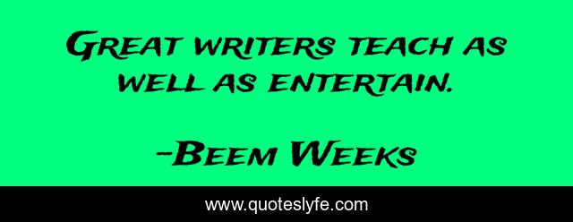 "Beem Weeks Quotes." Quoteslyfe.com, 2025. Tue. 09 Dec. 2025. <https://www.quoteslyfe.com/quote/Great-writers-teach-as-well-as-entertain-150875>.