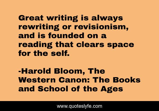 "Harold Bloom, The Western Canon: The Books and School of the Ages Quotes." Quoteslyfe.com, 2025. Sat. 13 Dec. 2025. <https://www.quoteslyfe.com/quote/Great-writing-is-always-rewriting-or-revisionism-108187>.
