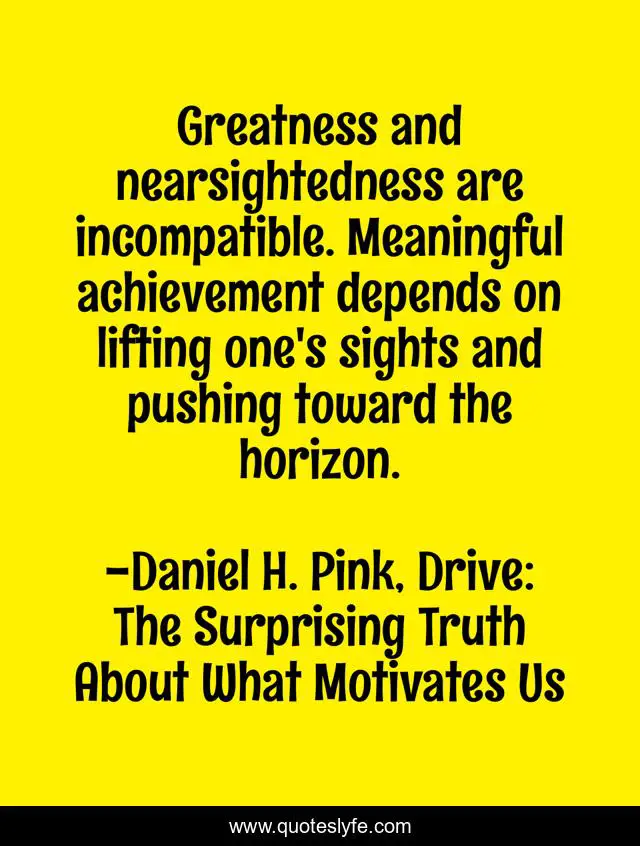 "Daniel H. Pink, Drive: The Surprising Truth About What Motivates Us Quotes." Quoteslyfe.com, 2025. Sun. 07 Dec. 2025. <https://www.quoteslyfe.com/quote/Greatness-and-nearsightedness-are-incompatible-Meaningful-achievement-47148>.
