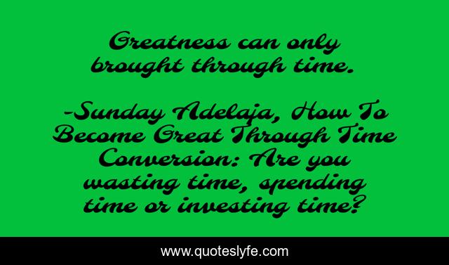 "Sunday Adelaja, How To Become Great Through Time Conversion: Are you wasting time, spending time or investing time? Quotes." Quoteslyfe.com, 2025. Sat. 06 Dec. 2025. <https://www.quoteslyfe.com/quote/Greatness-can-only-brought-through-time-39412>.