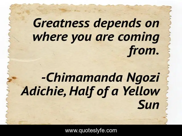"Chimamanda Ngozi Adichie, Half of a Yellow Sun Quotes." Quoteslyfe.com, 2025. Sun. 07 Dec. 2025. <https://www.quoteslyfe.com/quote/Greatness-depends-on-where-you-are-coming-165843>.