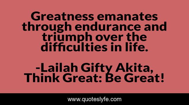 "Lailah Gifty Akita, Think Great: Be Great! Quotes." Quoteslyfe.com, 2025. Mon. 08 Dec. 2025. <https://www.quoteslyfe.com/quote/Greatness-emanates-through-endurance-and-triumph-over-91973>.