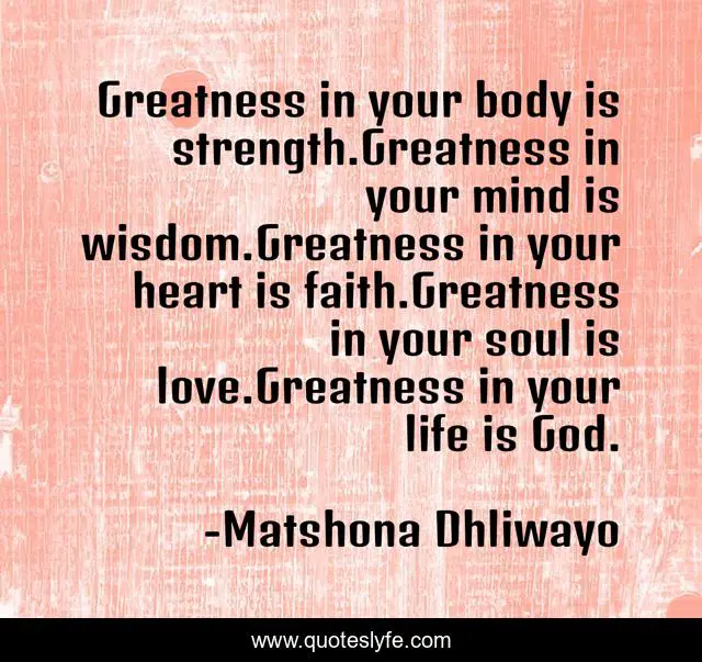 Greatness in your body is strength.Greatness in your mind is wisdom.Greatness in your heart is faith.Greatness in your soul is love.Greatness in your life is God.