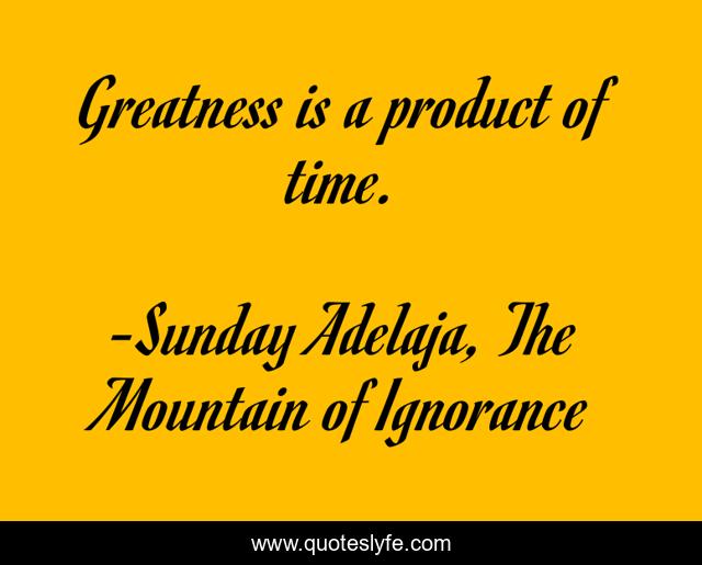 "Sunday Adelaja, The Mountain of Ignorance Quotes." Quoteslyfe.com, 2025. Sun. 07 Dec. 2025. <https://www.quoteslyfe.com/quote/Greatness-is-a-product-of-time-39421>.