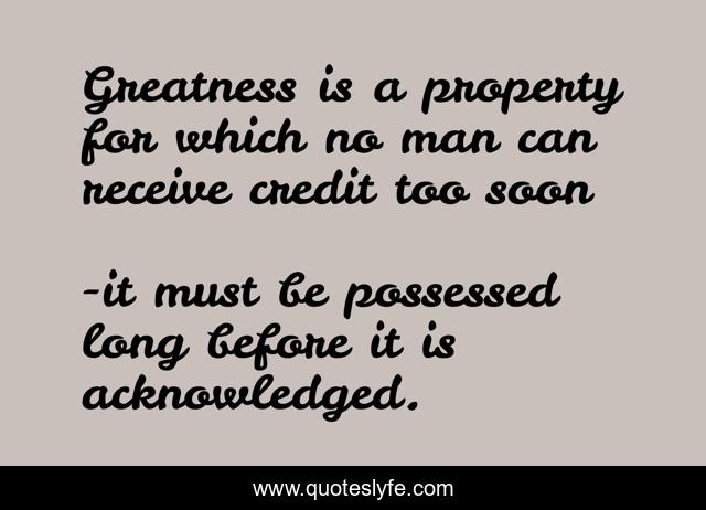 "it must be possessed long before it is acknowledged. Quotes." Quoteslyfe.com, 2025. Fri. 05 Dec. 2025. <https://www.quoteslyfe.com/quote/Greatness-is-a-property-for-which-no-165640>.