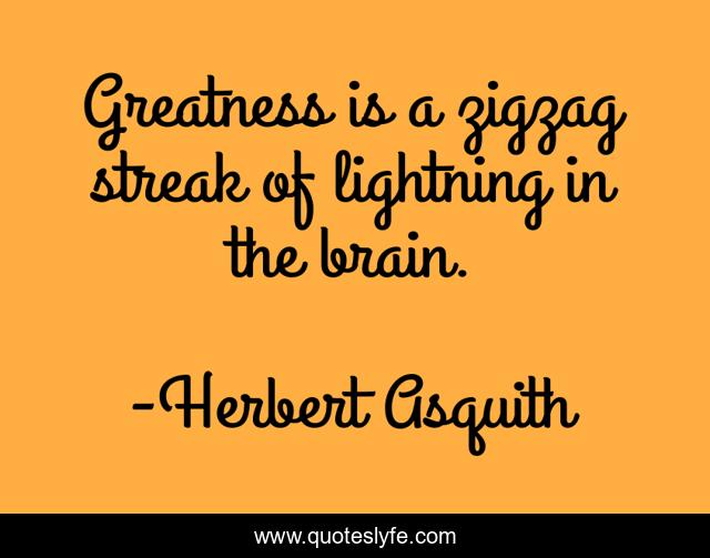 This page presents the quote "Greatness is a zigzag streak of lightning in the brain.". Author of this quote is Herbert Asquith. .