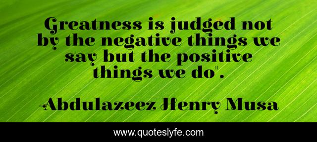 This page presents the quote "Greatness is judged not by the negative things we say but the positive things we do".". Author of this quote is Abdulazeez Henry Musa. .