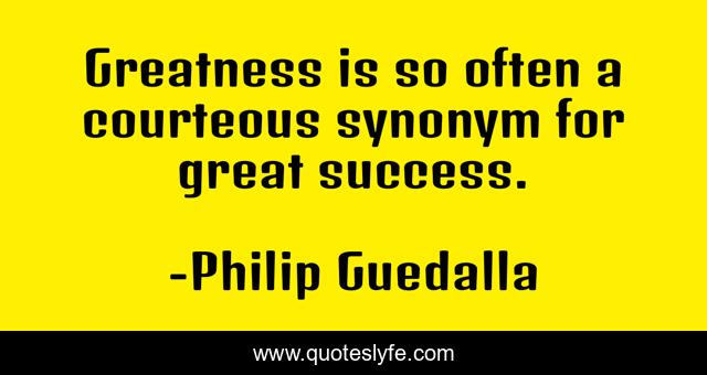 This page presents the quote "Greatness is so often a courteous synonym for great success.". Author of this quote is Philip Guedalla. This quote is about great, courteous, greatness,.